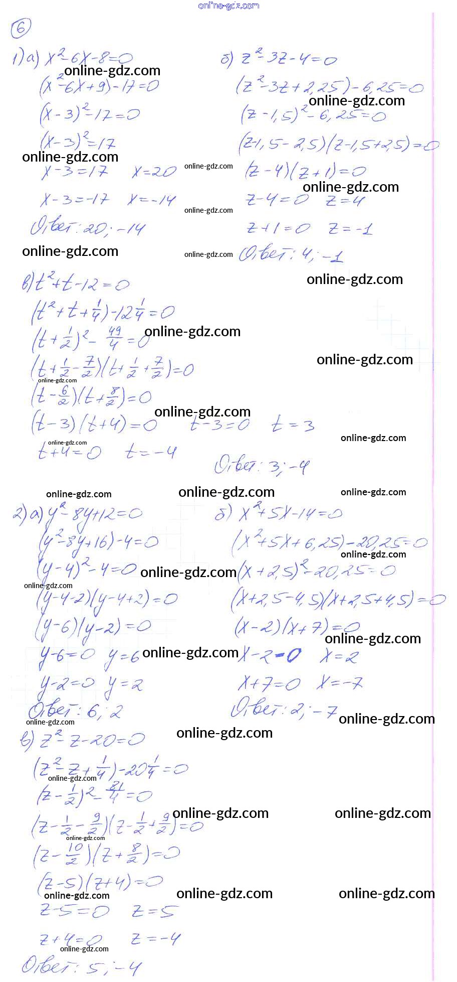 Готовые домашние задания по Алгебре за 8 класс Дидактические материалы Евстафьева, Карп 2017 - О-16. Квадратные уравнения Обучающие работы 6