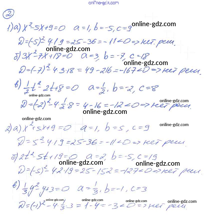 Готовые домашние задания по Алгебре за 8 класс Дидактические материалы Евстафьева, Карп 2017 - О-17. Решение квадратных уравнений по формуле корней Обучающие работы 2