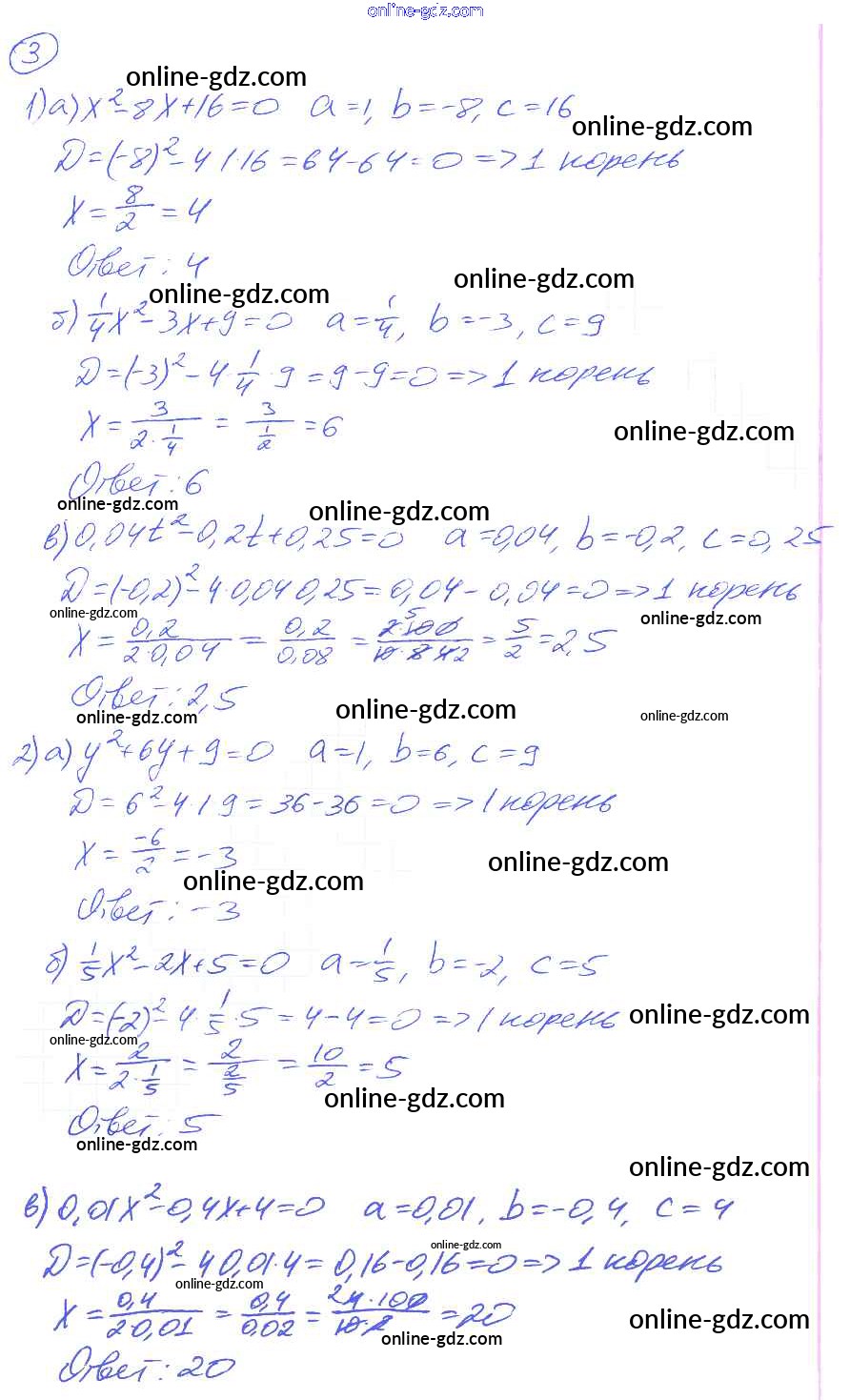 Готовые домашние задания по Алгебре за 8 класс Дидактические материалы Евстафьева, Карп 2017 - О-17. Решение квадратных уравнений по формуле корней Обучающие работы 3