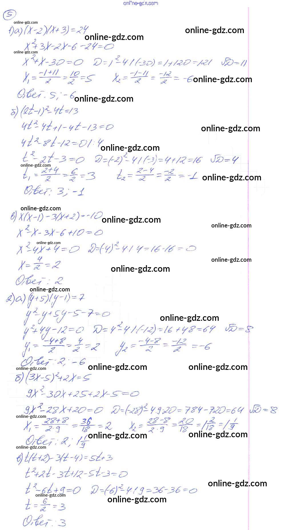 Готовые домашние задания по Алгебре за 8 класс Дидактические материалы Евстафьева, Карп 2017 - О-17. Решение квадратных уравнений по формуле корней Обучающие работы 5