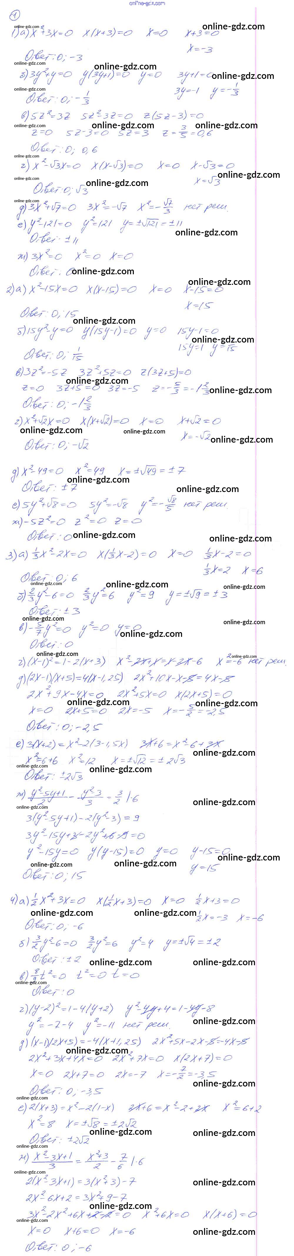 Готовые домашние задания по Алгебре за 8 класс Дидактические материалы Евстафьева, Карп 2017 - О-20. Неполные квадратные уравнения Обучающие работы 1