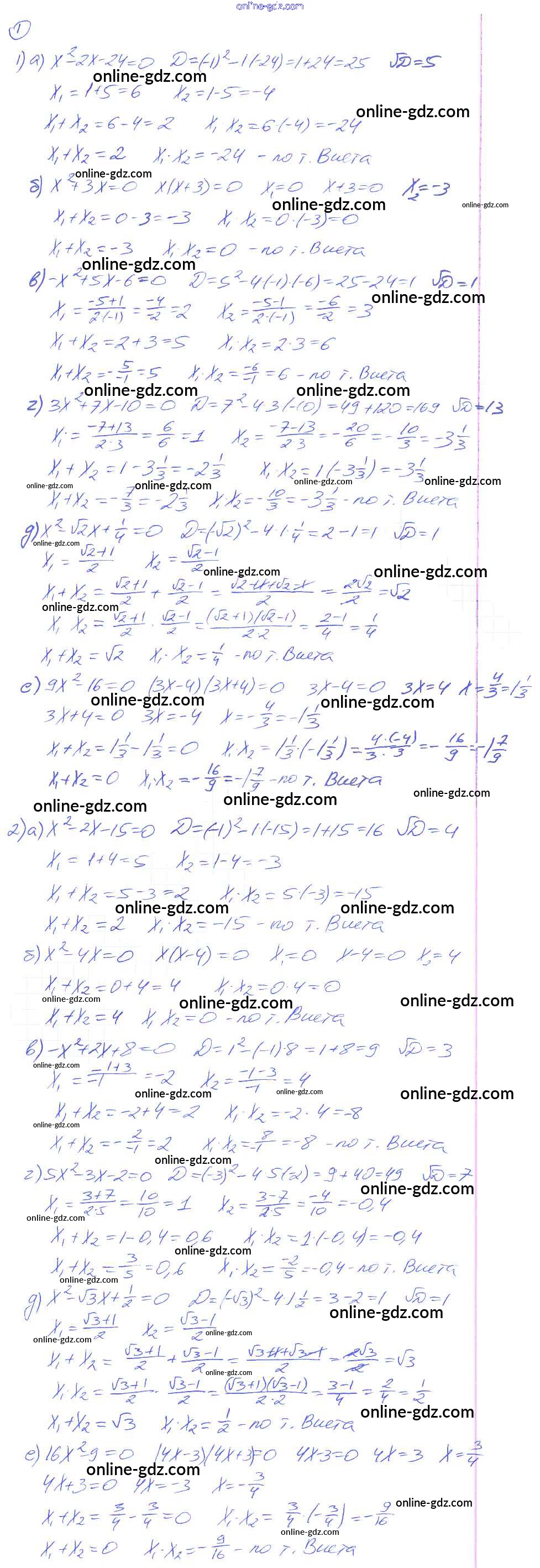 Готовые домашние задания по Алгебре за 8 класс Дидактические материалы Евстафьева, Карп 2017 - О-21. Теорема Виета Обучающие работы 1