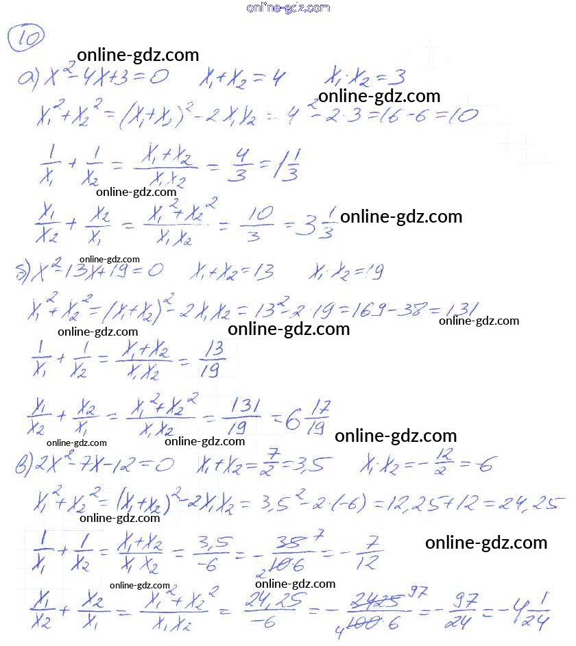 Готовые домашние задания по Алгебре за 8 класс Дидактические материалы Евстафьева, Карп 2017 - О-21. Теорема Виета Обучающие работы 10