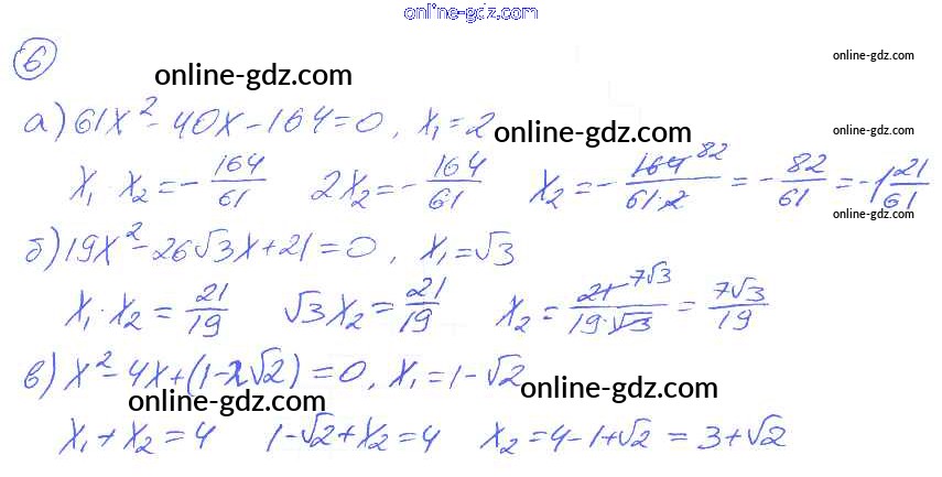 Готовые домашние задания по Алгебре за 8 класс Дидактические материалы Евстафьева, Карп 2017 - О-21. Теорема Виета Обучающие работы 6