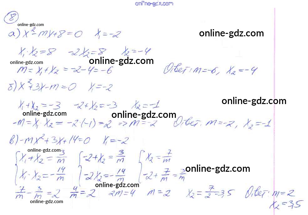Готовые домашние задания по Алгебре за 8 класс Дидактические материалы Евстафьева, Карп 2017 - О-21. Теорема Виета Обучающие работы 8