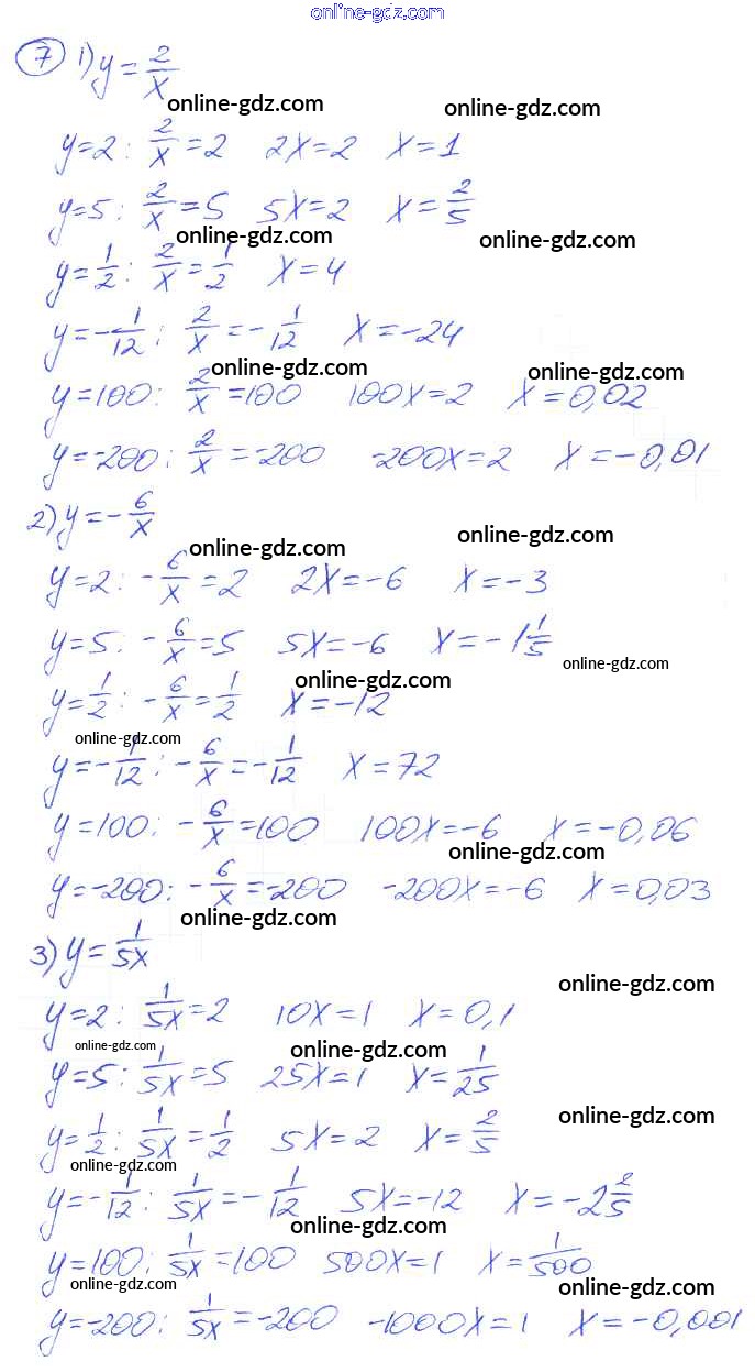 Готовые домашние задания по Алгебре за 8 класс Дидактические материалы Евстафьева, Карп 2017 - О-35. Функция y = k:x и ее график Обучающие работы 7