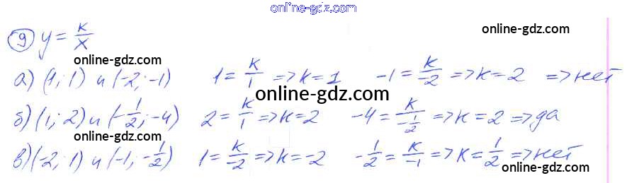Готовые домашние задания по Алгебре за 8 класс Дидактические материалы Евстафьева, Карп 2017 - О-35. Функция y = k:x и ее график Обучающие работы 9