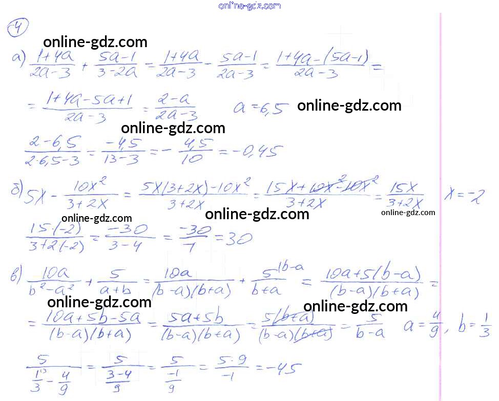 Готовые домашние задания по Алгебре за 8 класс Дидактические материалы Евстафьева, Карп 2017 - О-4. Сложение и вычитание алгебраических дробей Обучающие работы 4