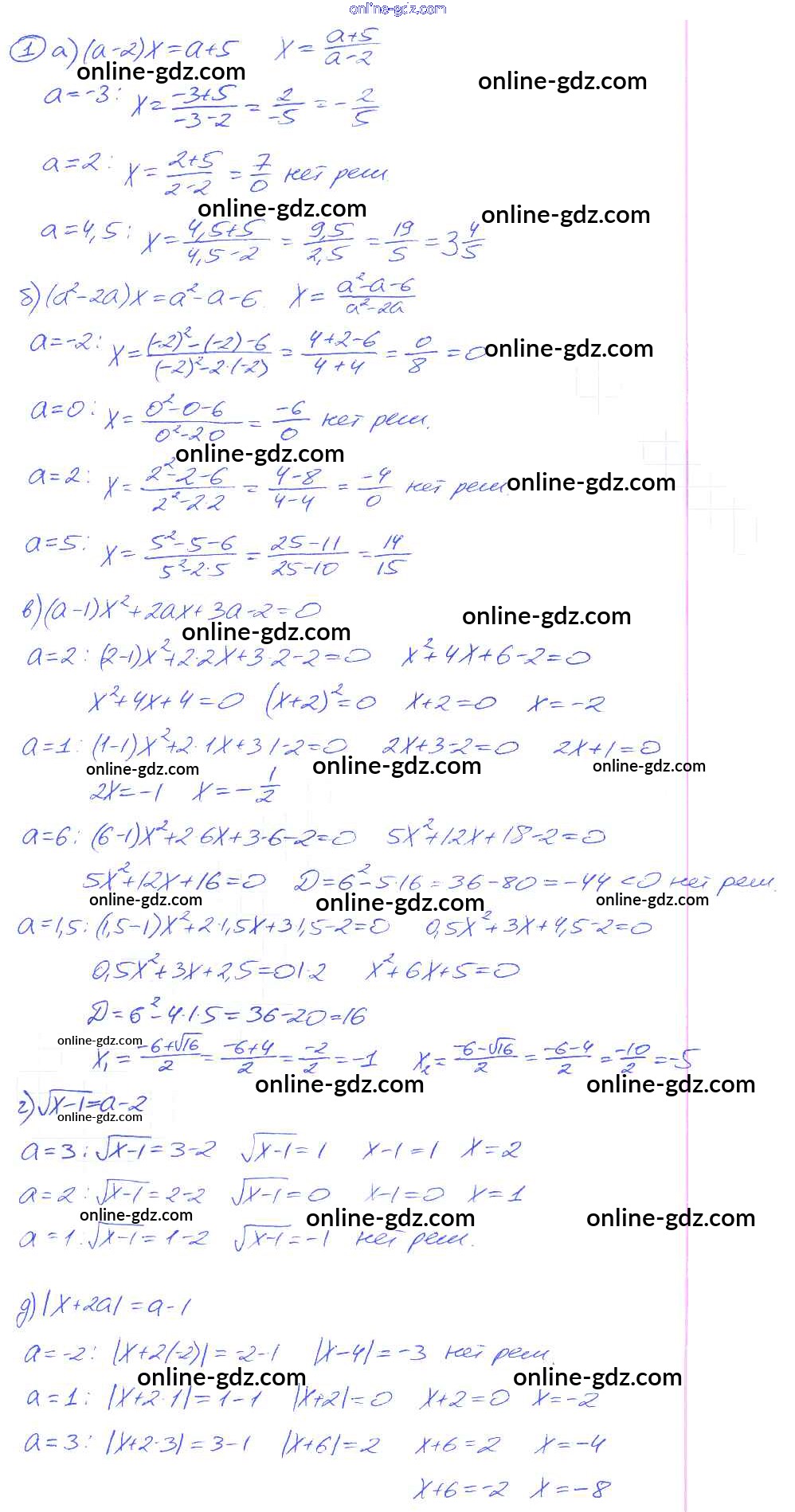 Готовые домашние задания по Алгебре за 8 класс Дидактические материалы Евстафьева, Карп 2017 - О-41. Уравнения с параметрами Обучающие работы 1