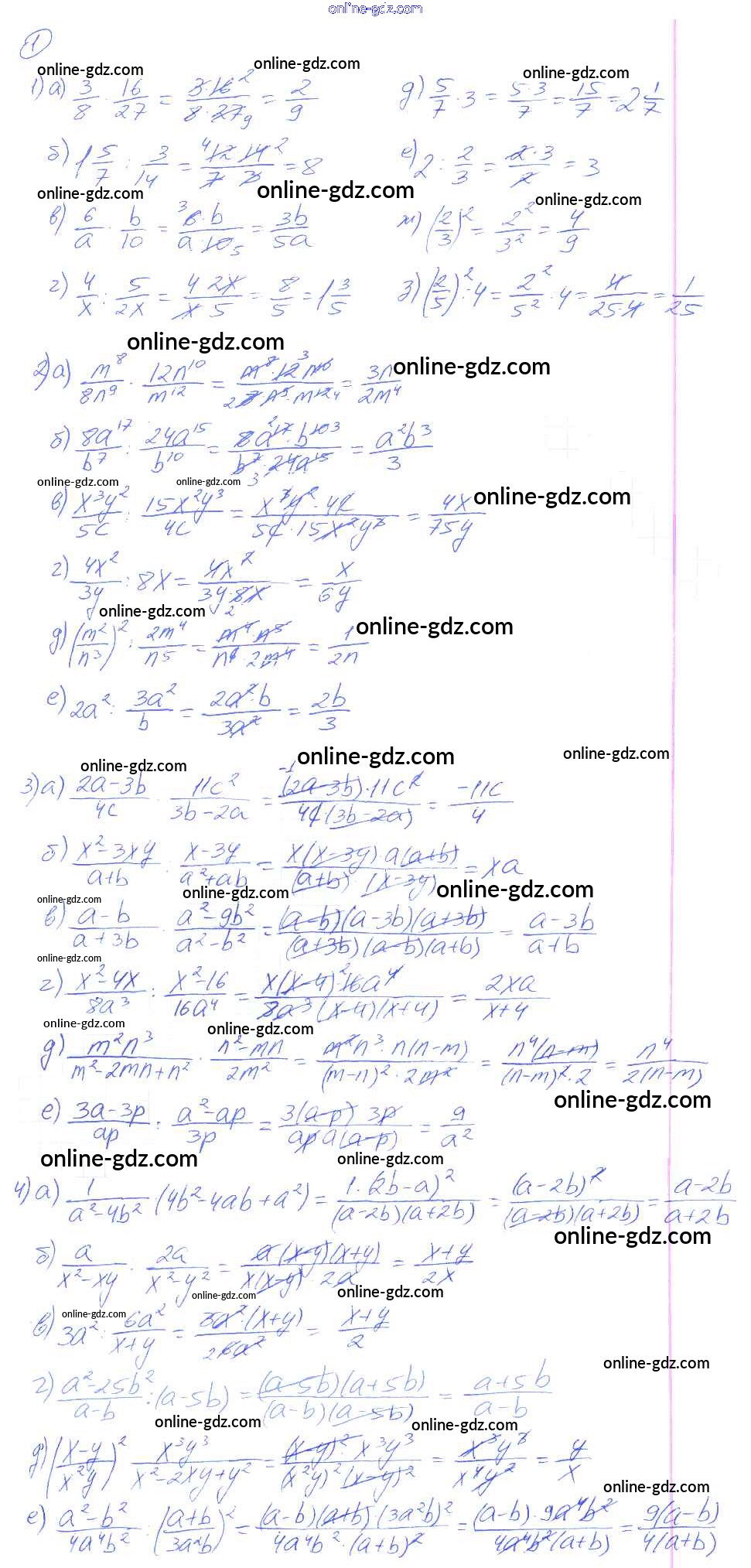 Готовые домашние задания по Алгебре за 8 класс Дидактические материалы Евстафьева, Карп 2017 - О-5. Умножение и деление дробей, возведение в степень Обучающие работы 1