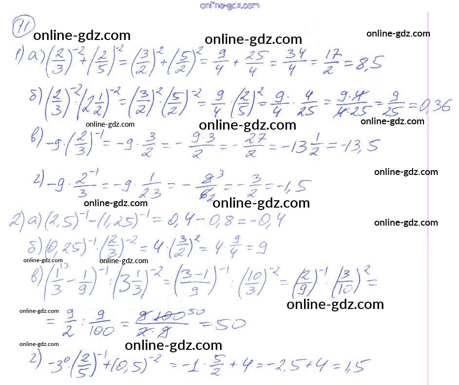 Готовые домашние задания по Алгебре за 8 класс Дидактические материалы Евстафьева, Карп 2017 - О-7. Степень с целым показателем Обучающие работы 11