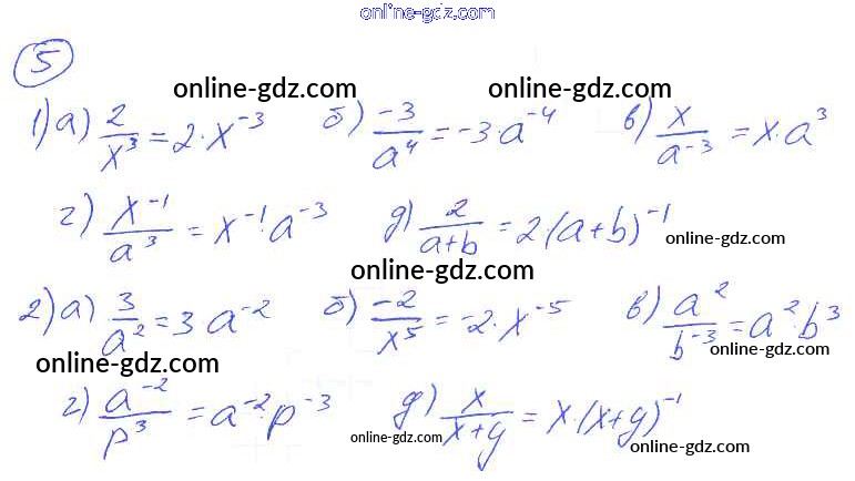 Готовые домашние задания по Алгебре за 8 класс Дидактические материалы Евстафьева, Карп 2017 - О-7. Степень с целым показателем Обучающие работы 5