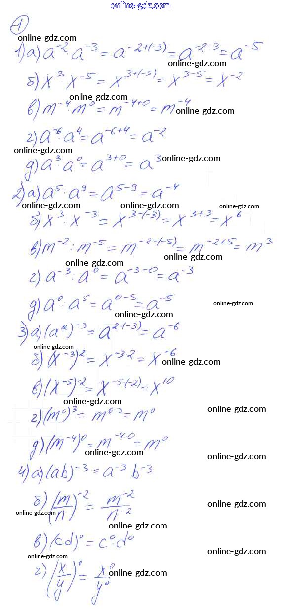 Готовые домашние задания по Алгебре за 8 класс Дидактические материалы Евстафьева, Карп 2017 - О-8. Свойства степени с целым показателем Обучающие работы 1