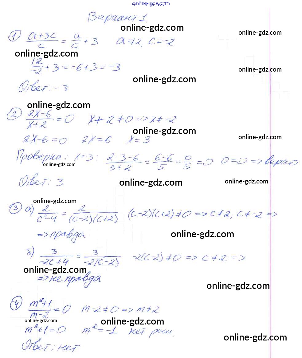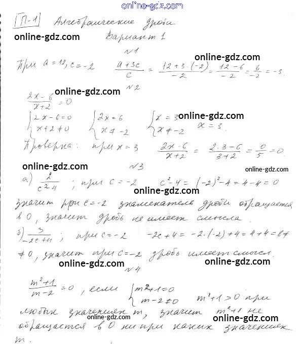Готовые домашние задания по Алгебре за 8 класс Дидактические материалы Евстафьева, Карп 2017 - П-1. Алгебраические дроби Проверочные задания Вариант 1