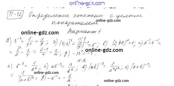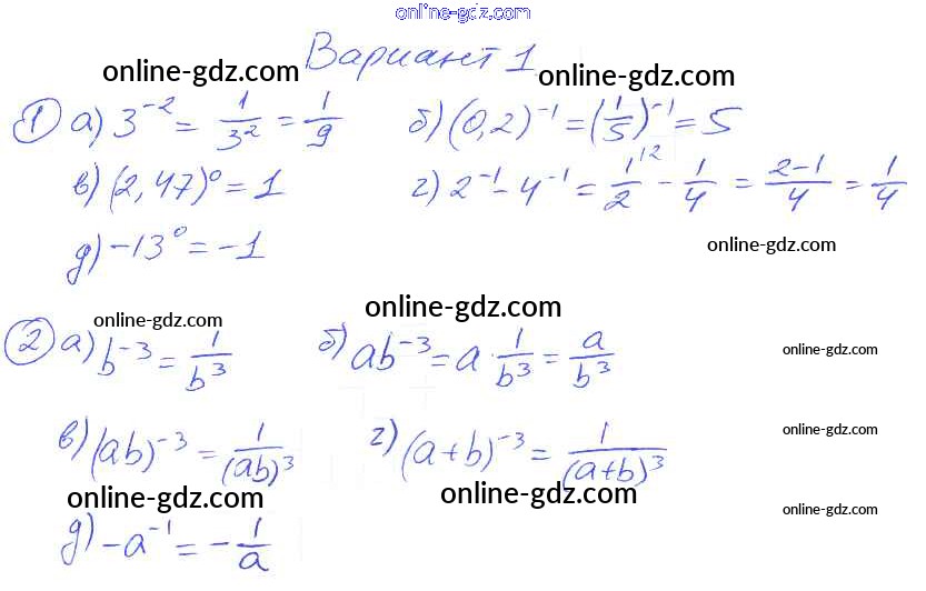 Готовые домашние задания по Алгебре за 8 класс Дидактические материалы Евстафьева, Карп 2017 - П-12. Определение степени с целым показателем Проверочные задания Вариант 1