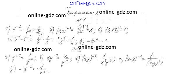 Готовые домашние задания по Алгебре за 8 класс Дидактические материалы Евстафьева, Карп 2017 - П-12. Определение степени с целым показателем Проверочные задания Вариант 2