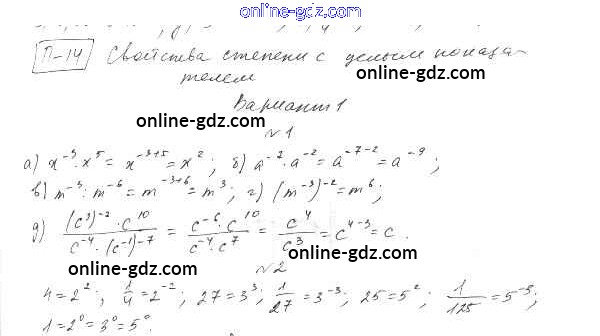Готовые домашние задания по Алгебре за 8 класс Дидактические материалы Евстафьева, Карп 2017 - П-14. Свойства степени с целым показателем Проверочные задания Вариант 1