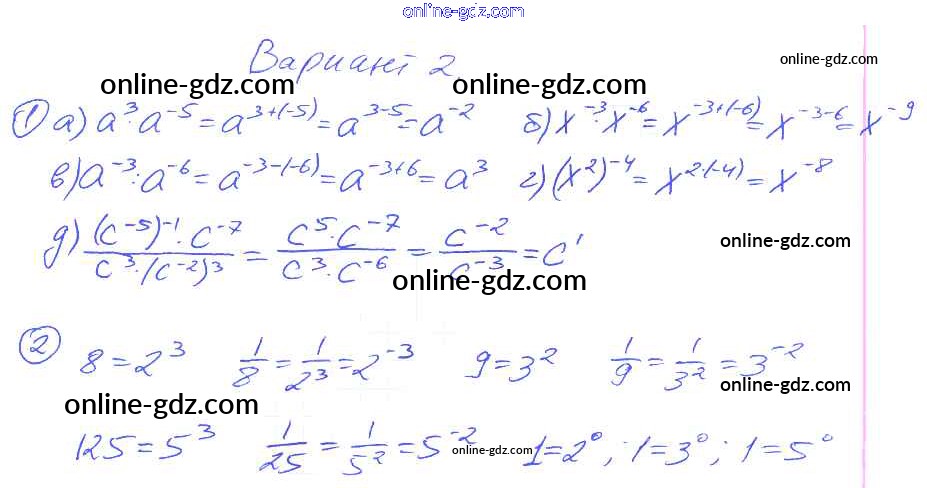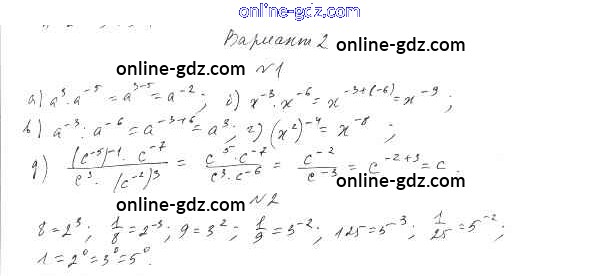 Готовые домашние задания по Алгебре за 8 класс Дидактические материалы Евстафьева, Карп 2017 - П-14. Свойства степени с целым показателем Проверочные задания Вариант 2