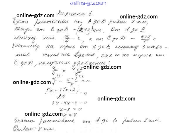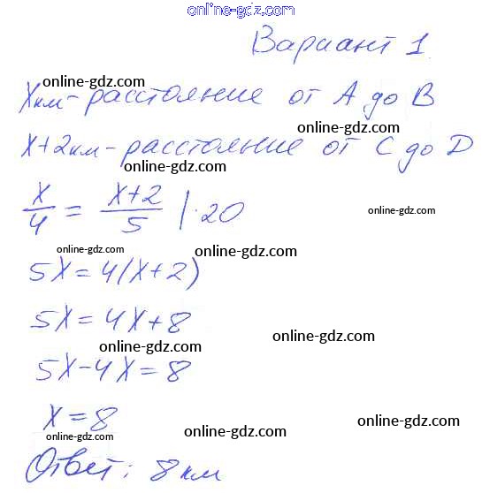 Готовые домашние задания по Алгебре за 8 класс Дидактические материалы Евстафьева, Карп 2017 - П-15. Решение задач Проверочные задания Вариант 1