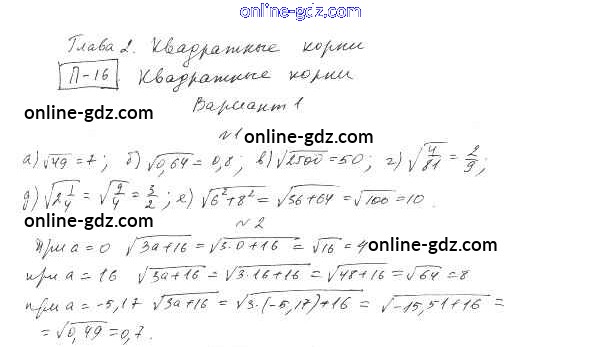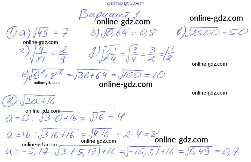 Готовые домашние задания по Алгебре за 8 класс Дидактические материалы Евстафьева, Карп 2017 - П-16. Квадратные корни Проверочные задания Вариант 1