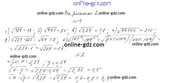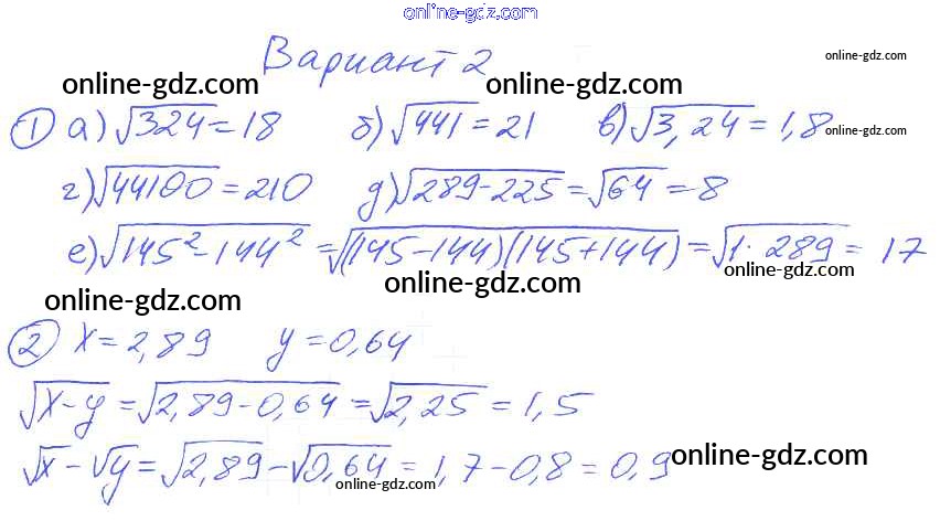 Готовые домашние задания по Алгебре за 8 класс Дидактические материалы Евстафьева, Карп 2017 - П-17. Квадратные корни Проверочные задания Вариант 2
