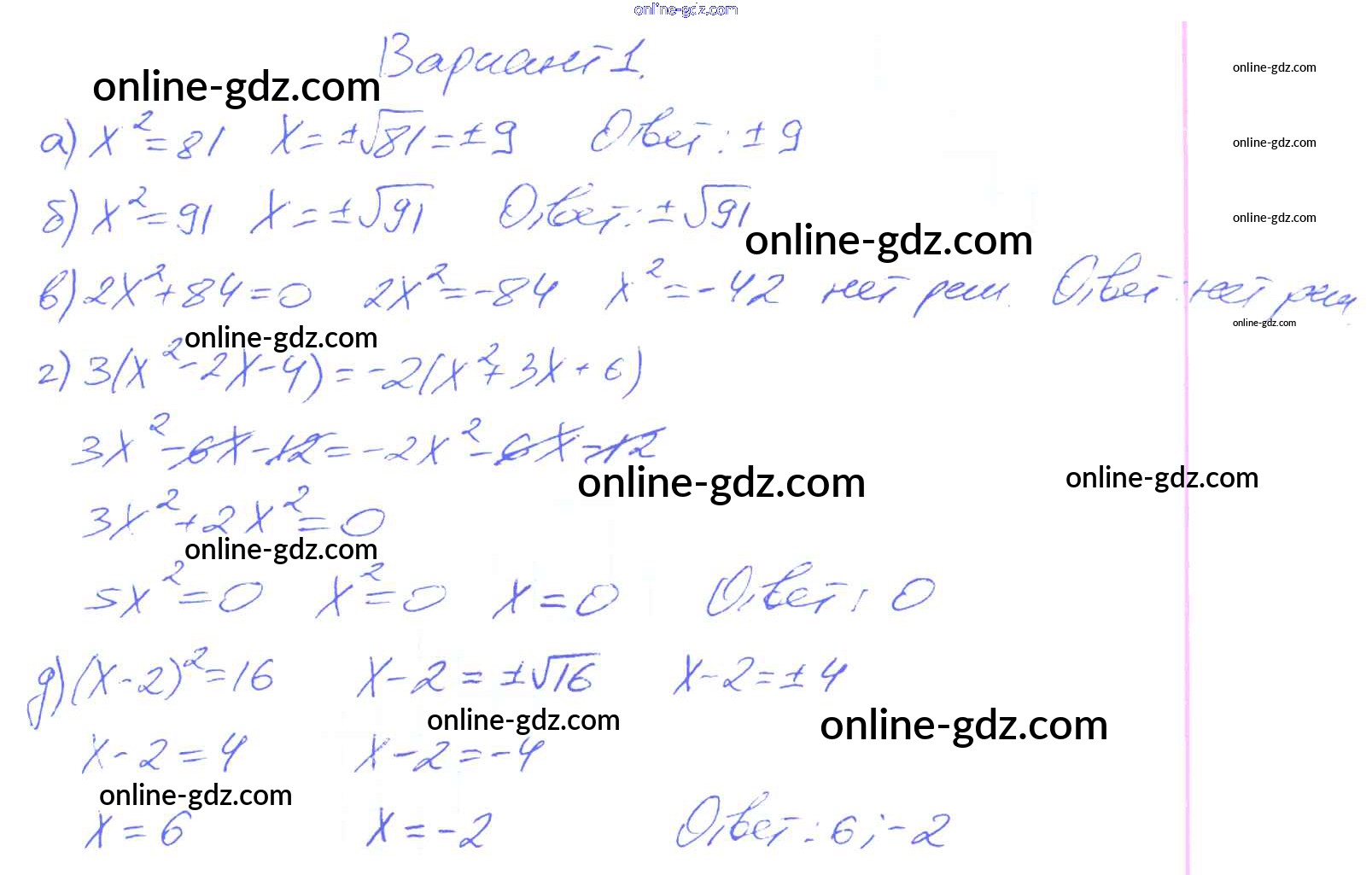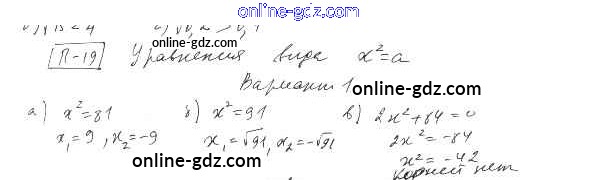 Готовые домашние задания по Алгебре за 8 класс Дидактические материалы Евстафьева, Карп 2017 - П-19. Уравнения вида х2 = a Проверочные задания Вариант 1