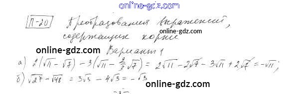 Готовые домашние задания по Алгебре за 8 класс Дидактические материалы Евстафьева, Карп 2017 - П-20. Неполные квадратные уравнения Проверочные задания Вариант 1