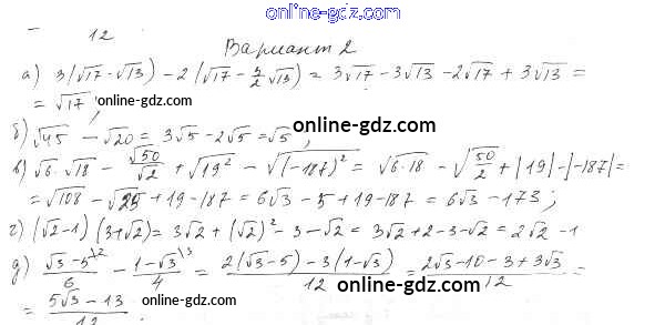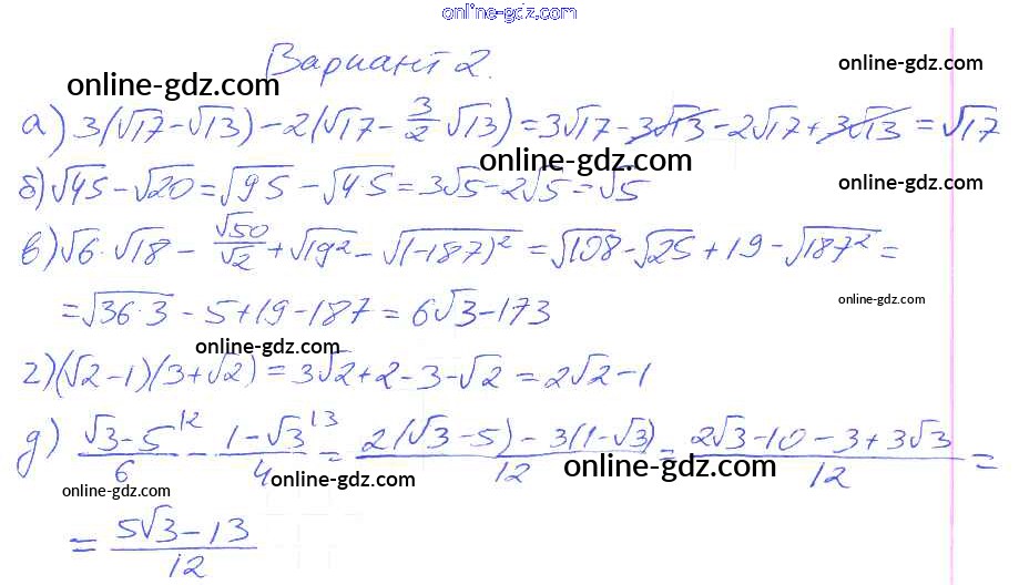 Готовые домашние задания по Алгебре за 8 класс Дидактические материалы Евстафьева, Карп 2017 - П-20. Неполные квадратные уравнения Проверочные задания Вариант 2