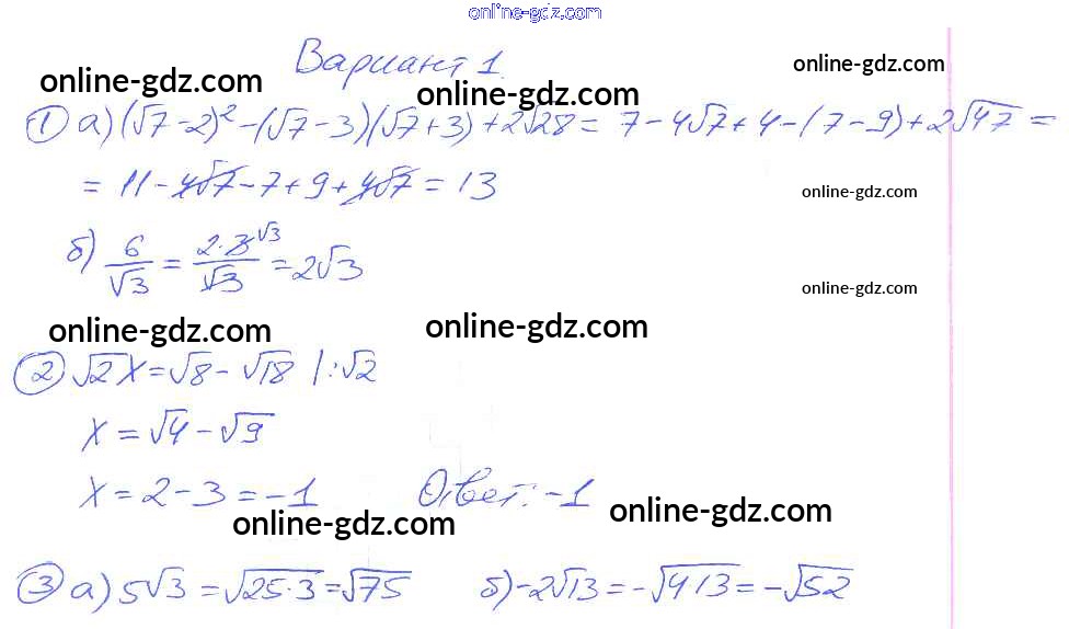 Готовые домашние задания по Алгебре за 8 класс Дидактические материалы Евстафьева, Карп 2017 - П-21. Теорема Виета Проверочные задания Вариант 1