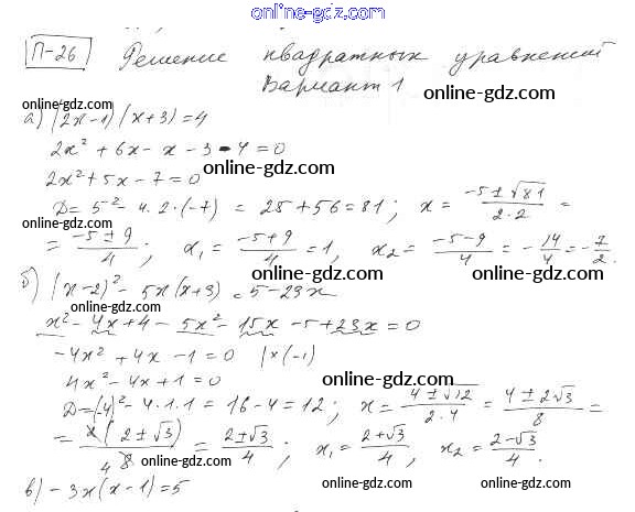 Готовые домашние задания по Алгебре за 8 класс Дидактические материалы Евстафьева, Карп 2017 - П-26. Системы уравнений. Решение систем уравнений способом сложения Проверочные задания Вариант 1