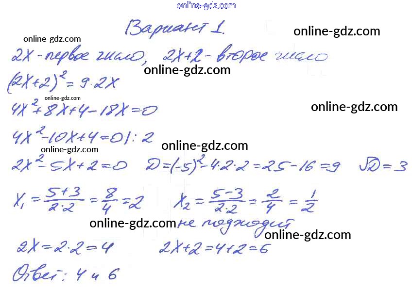 Готовые домашние задания по Алгебре за 8 класс Дидактические материалы Евстафьева, Карп 2017 - П-28. Решение задач с помощью систем уравнений Проверочные задания Вариант 1