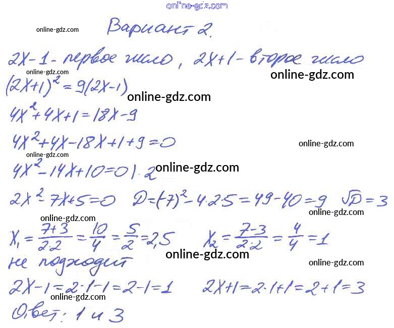 Готовые домашние задания по Алгебре за 8 класс Дидактические материалы Евстафьева, Карп 2017 - П-28. Решение задач с помощью систем уравнений Проверочные задания Вариант 2