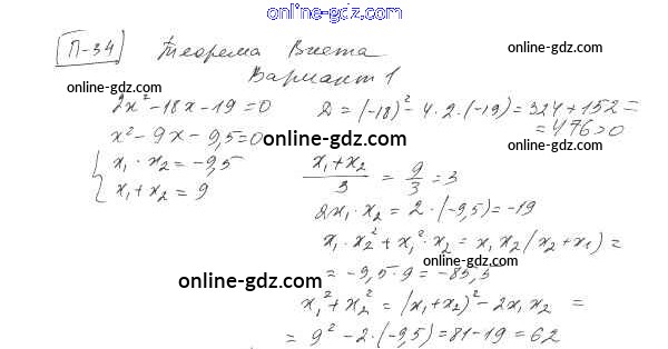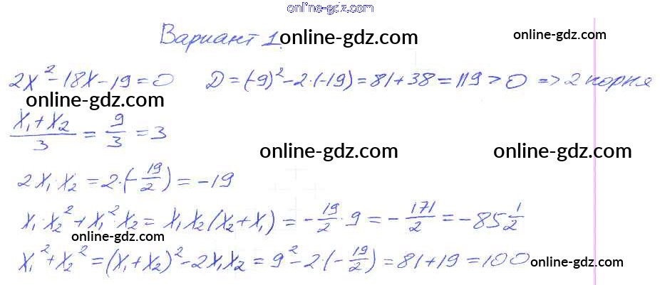 Готовые домашние задания по Алгебре за 8 класс Дидактические материалы Евстафьева, Карп 2017 - П-34. Теорема Виета Проверочные задания Вариант 1