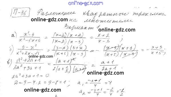 П-36. Разложение квадратного трехчлена на множители