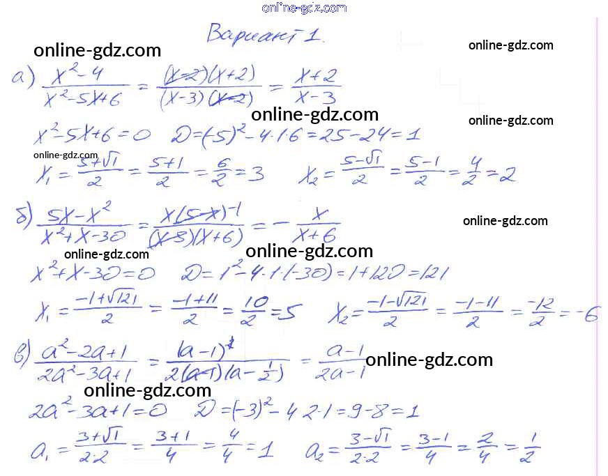 Готовые домашние задания по Алгебре за 8 класс Дидактические материалы Евстафьева, Карп 2017 - П-36. Разложение квадратного трехчлена на множители Проверочные задания Вариант 1