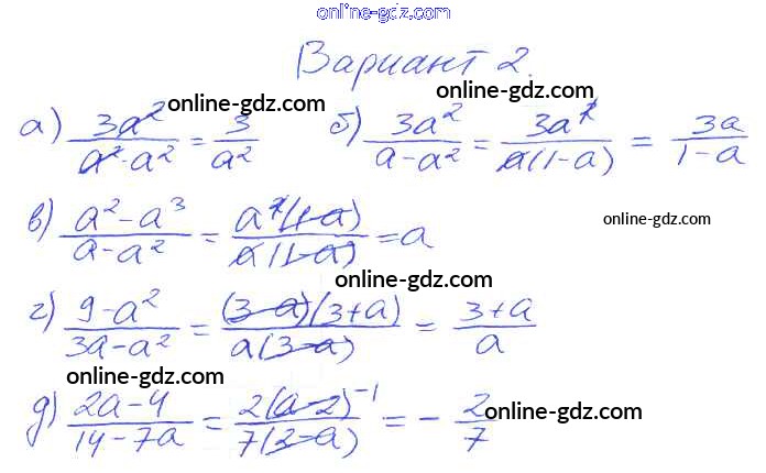 Готовые домашние задания по Алгебре за 8 класс Дидактические материалы Евстафьева, Карп 2017 - П-4. Сокращение дробей Проверочные задания Вариант 2