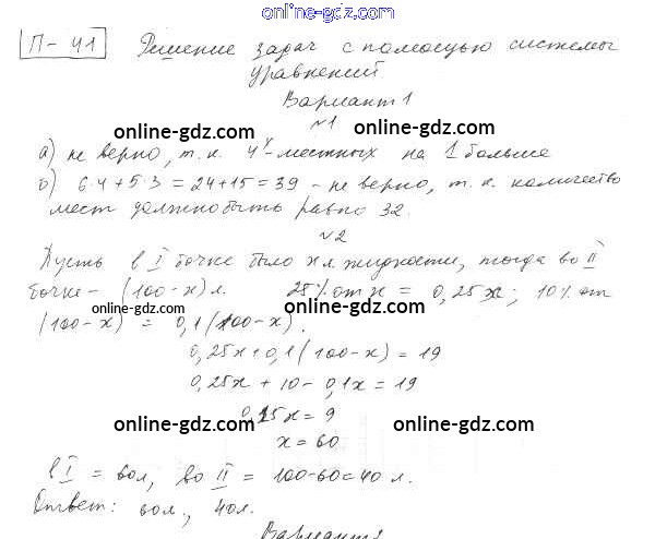 П-41. Решение задач с помощью систем уравнений