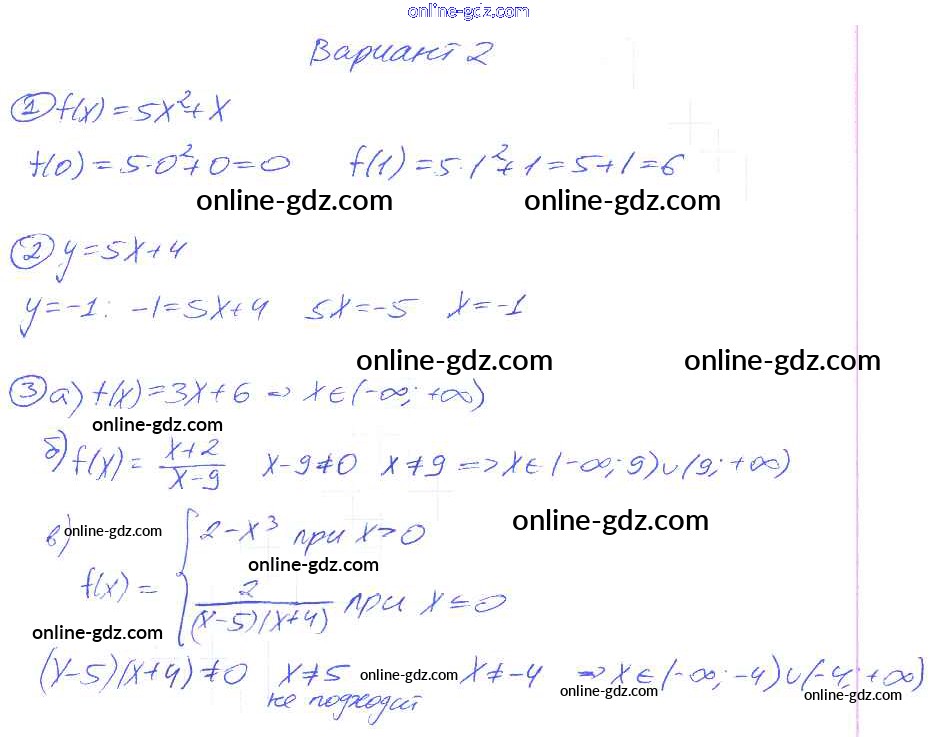 Готовые домашние задания по Алгебре за 8 класс Дидактические материалы Евстафьева, Карп 2017 - П-44. Что такое функция Проверочные задания Вариант 2