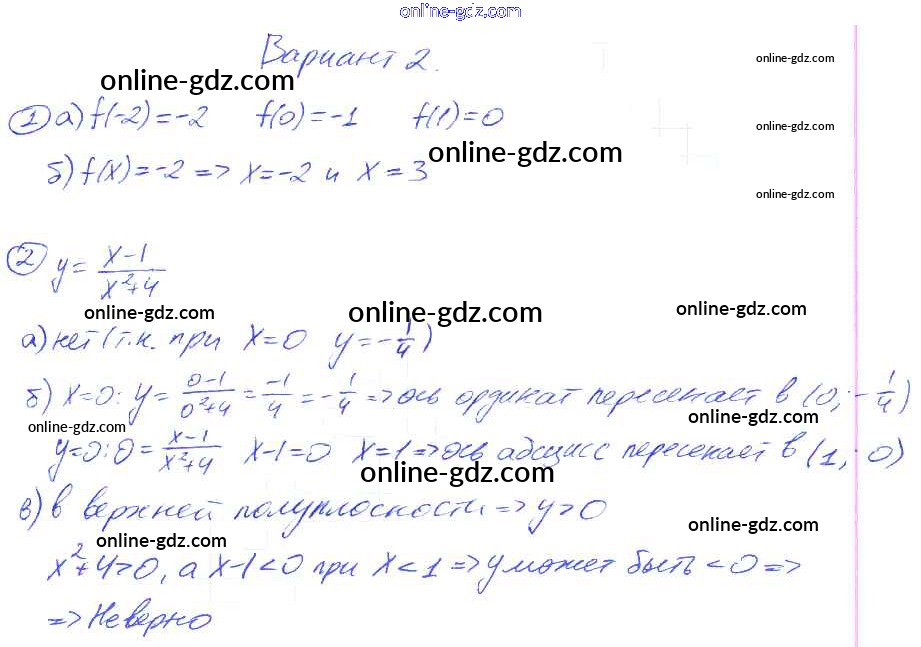 Готовые домашние задания по Алгебре за 8 класс Дидактические материалы Евстафьева, Карп 2017 - П-45. График функции Проверочные задания Вариант 2