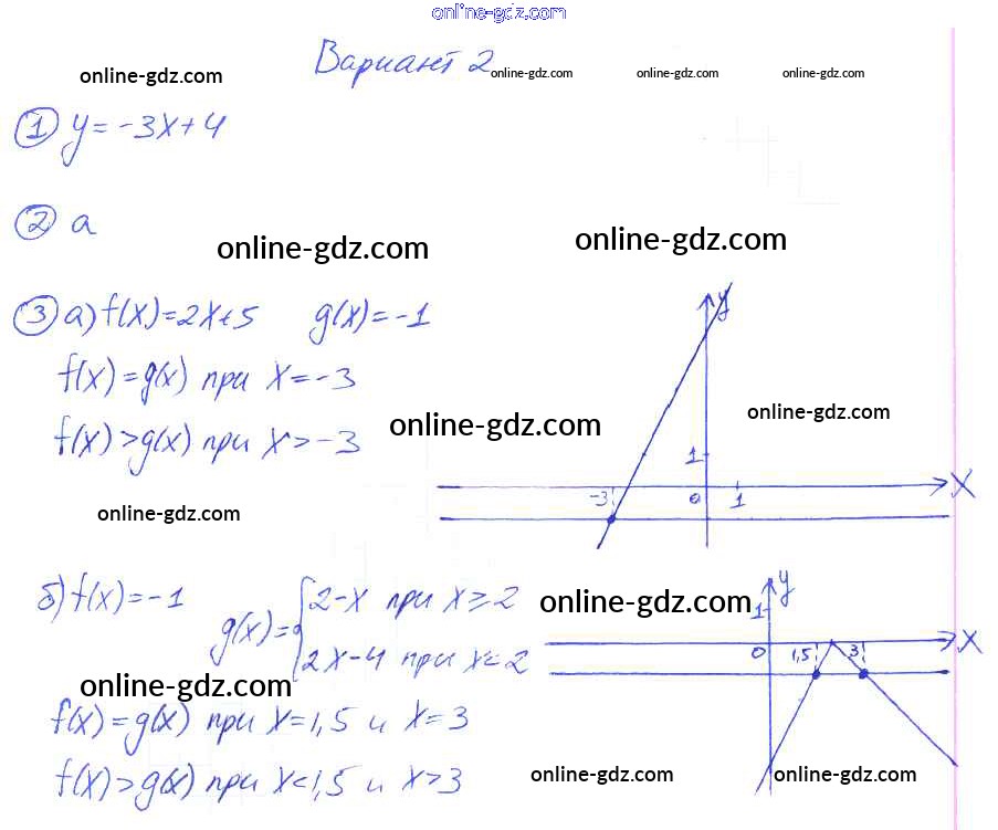 Готовые домашние задания по Алгебре за 8 класс Дидактические материалы Евстафьева, Карп 2017 - П-47. Линейная функция Проверочные задания Вариант 2