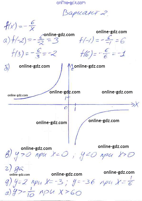 Готовые домашние задания по Алгебре за 8 класс Дидактические материалы Евстафьева, Карп 2017 - П-48. Функция y = k:x и ее график Проверочные задания Вариант 2