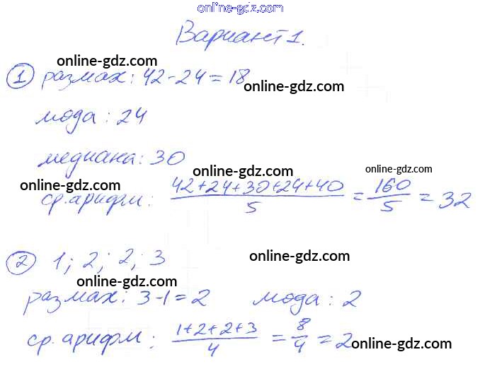 Готовые домашние задания по Алгебре за 8 класс Дидактические материалы Евстафьева, Карп 2017 - П-49. Статистические характеристики Проверочные задания Вариант 1