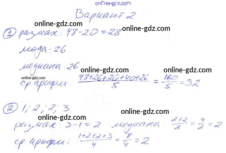 Готовые домашние задания по Алгебре за 8 класс Дидактические материалы Евстафьева, Карп 2017 - П-49. Статистические характеристики Проверочные задания Вариант 2