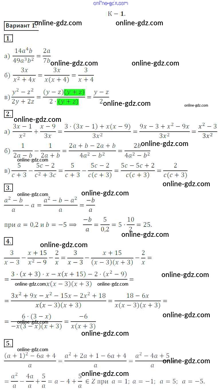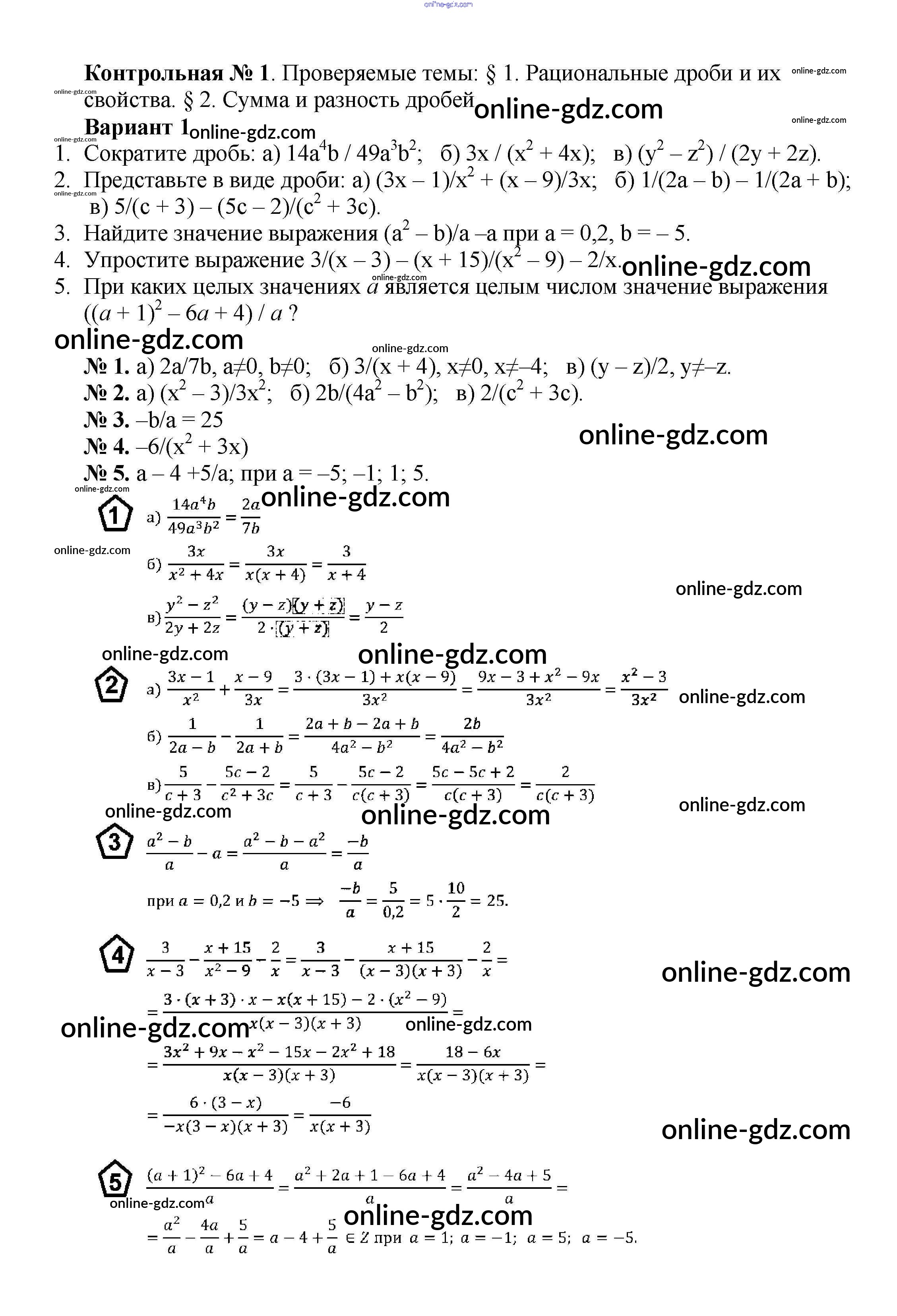 Готовые домашние задания по Алгебре за 8 класс Дидактические материалы Жохов, Макарычев 2014 - КР №1 Контрольные работы вариант 1