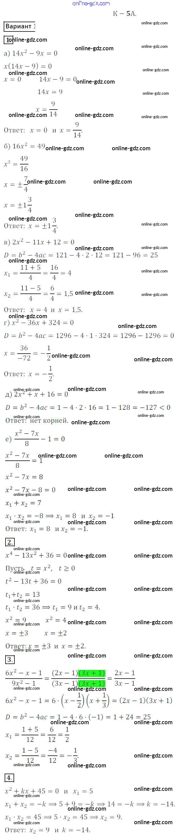 Готовые домашние задания по Алгебре за 8 класс Дидактические материалы Жохов, Макарычев 2014 - КР №5A Контрольные работы вариант 1