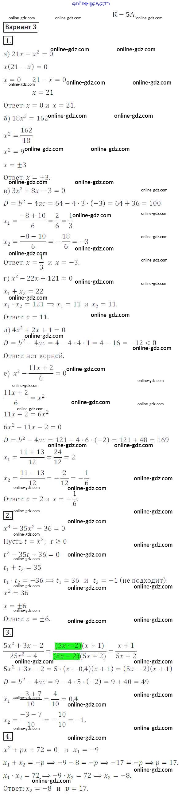Готовые домашние задания по Алгебре за 8 класс Дидактические материалы Жохов, Макарычев 2014 - КР №5A Контрольные работы вариант 3