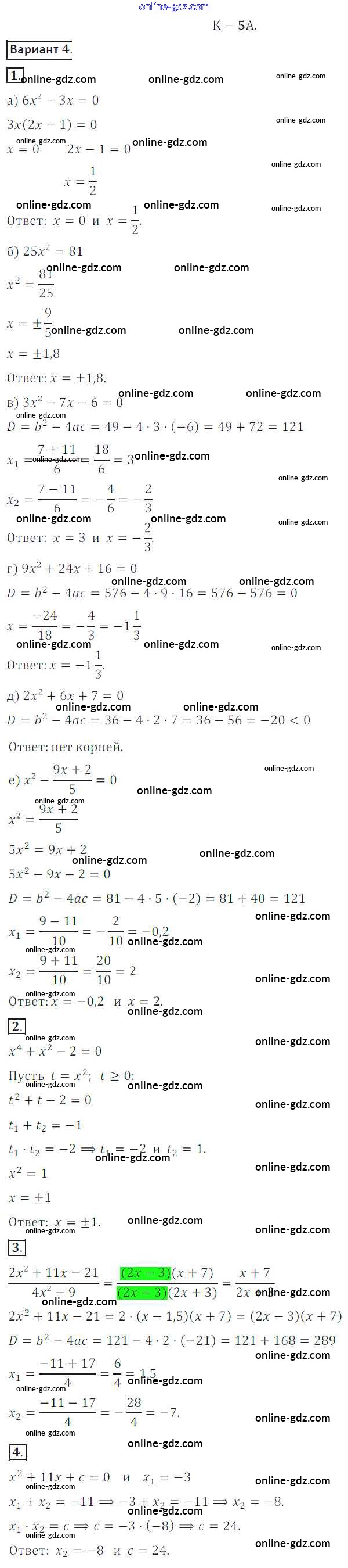 Готовые домашние задания по Алгебре за 8 класс Дидактические материалы Жохов, Макарычев 2014 - КР №5A Контрольные работы вариант 4