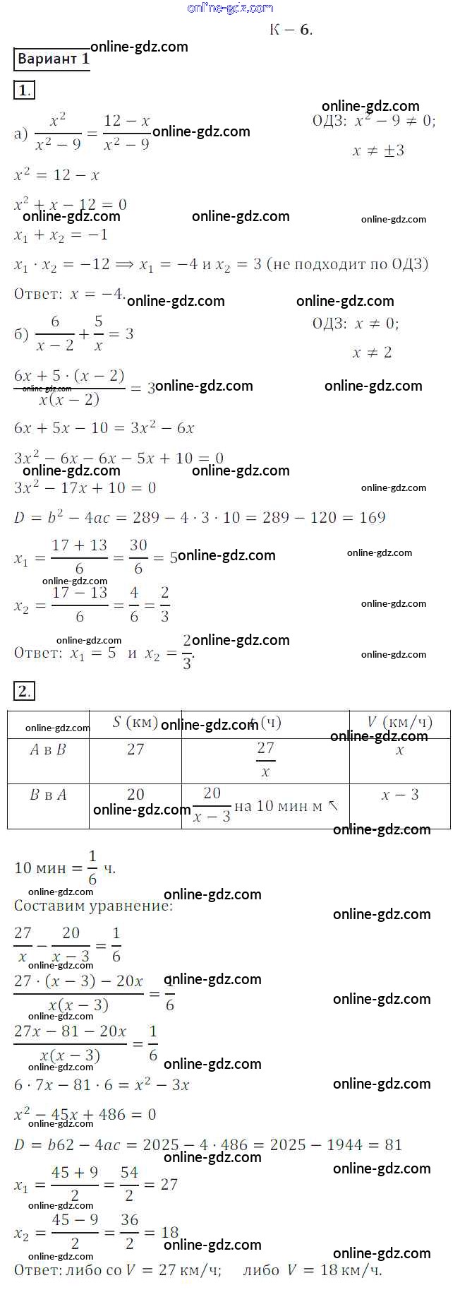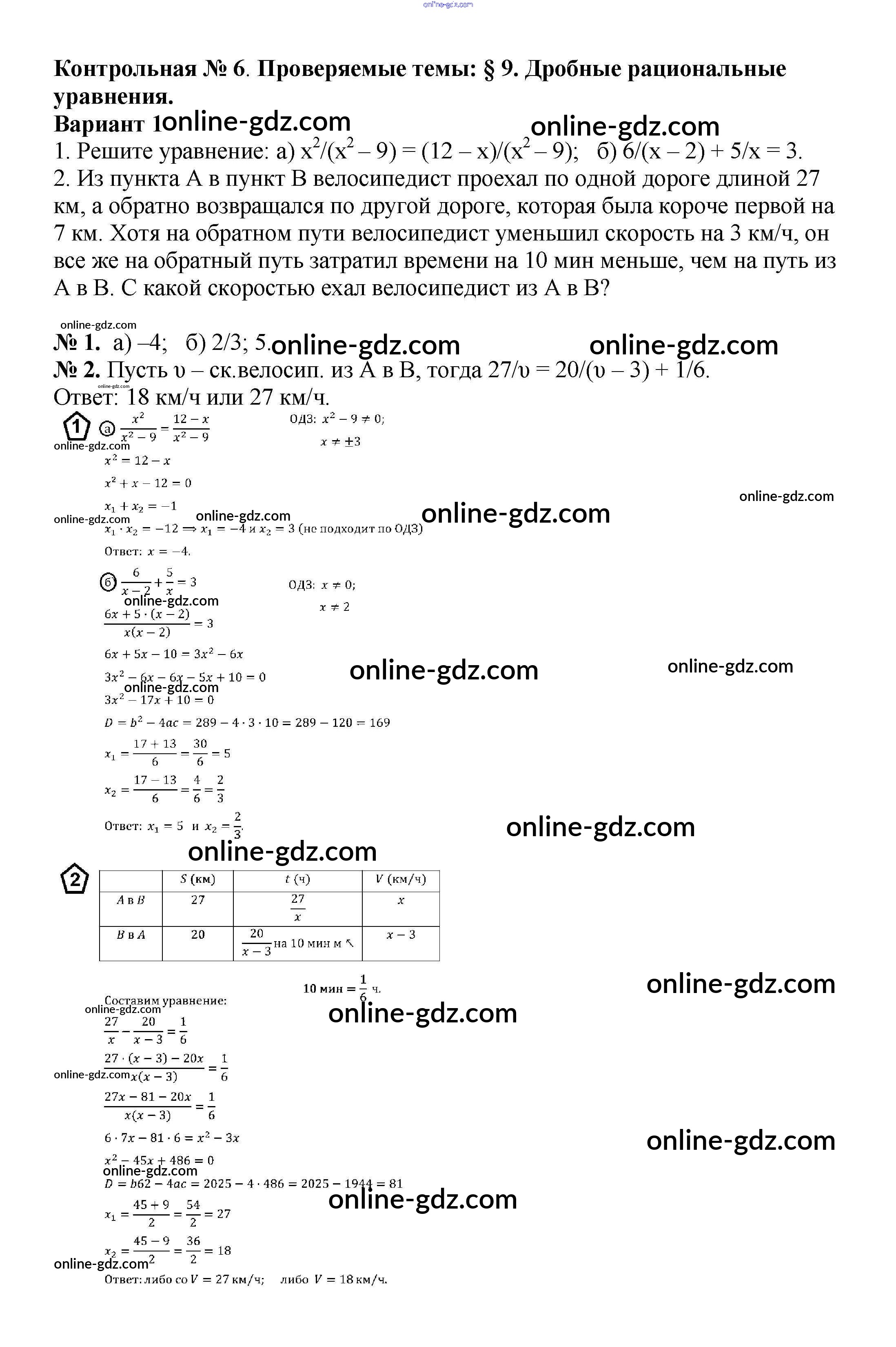 Готовые домашние задания по Алгебре за 8 класс Дидактические материалы Жохов, Макарычев 2014 - КР №6 Контрольные работы вариант 1