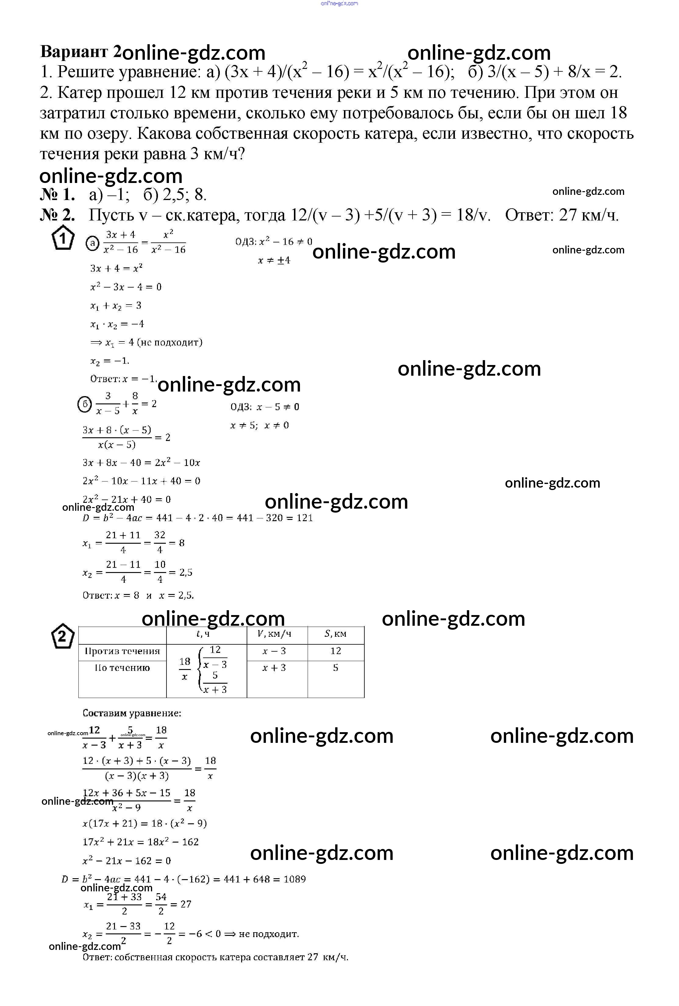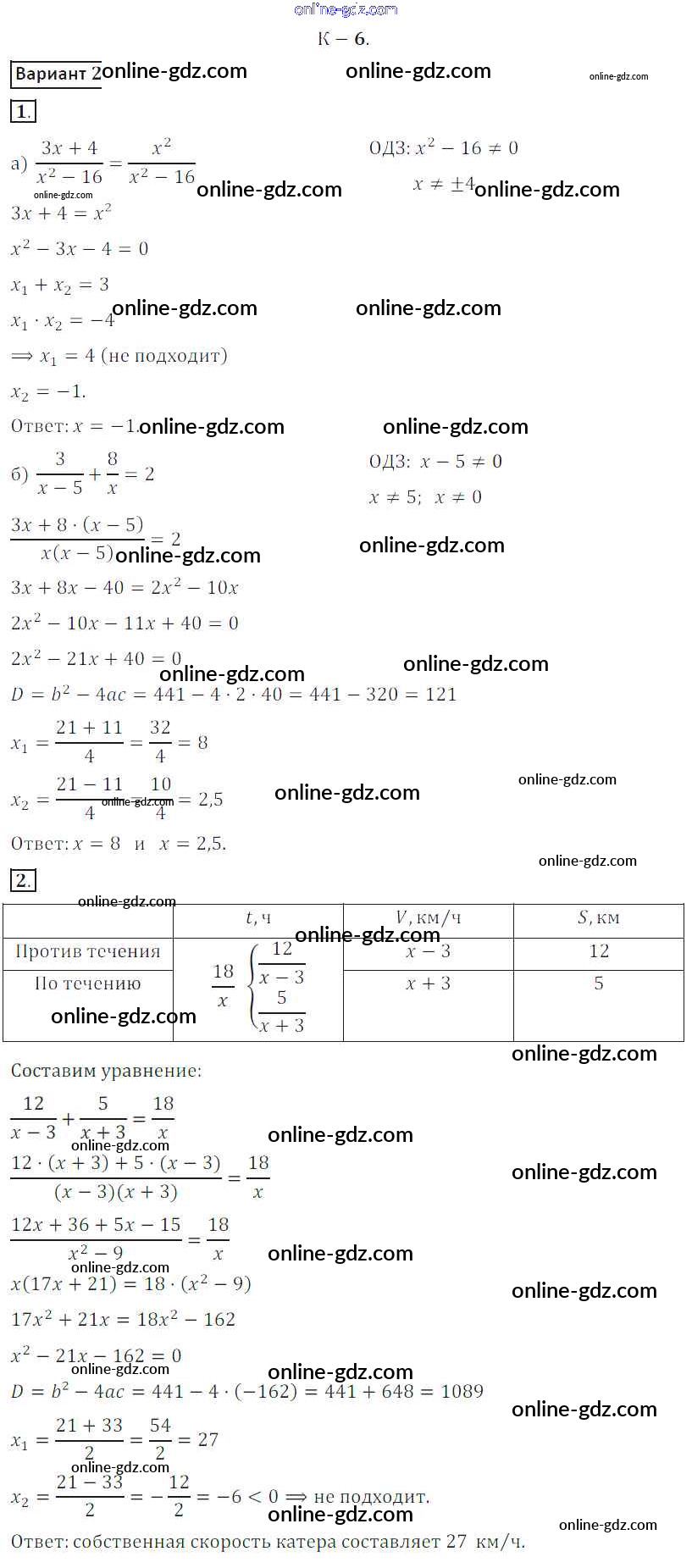 Готовые домашние задания по Алгебре за 8 класс Дидактические материалы Жохов, Макарычев 2014 - КР №6 Контрольные работы вариант 2