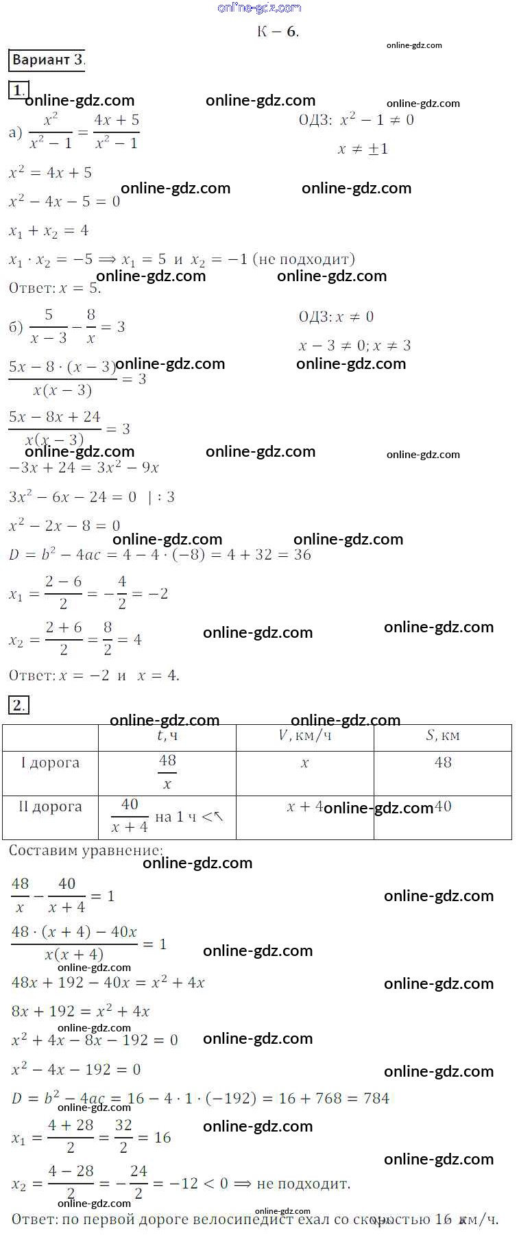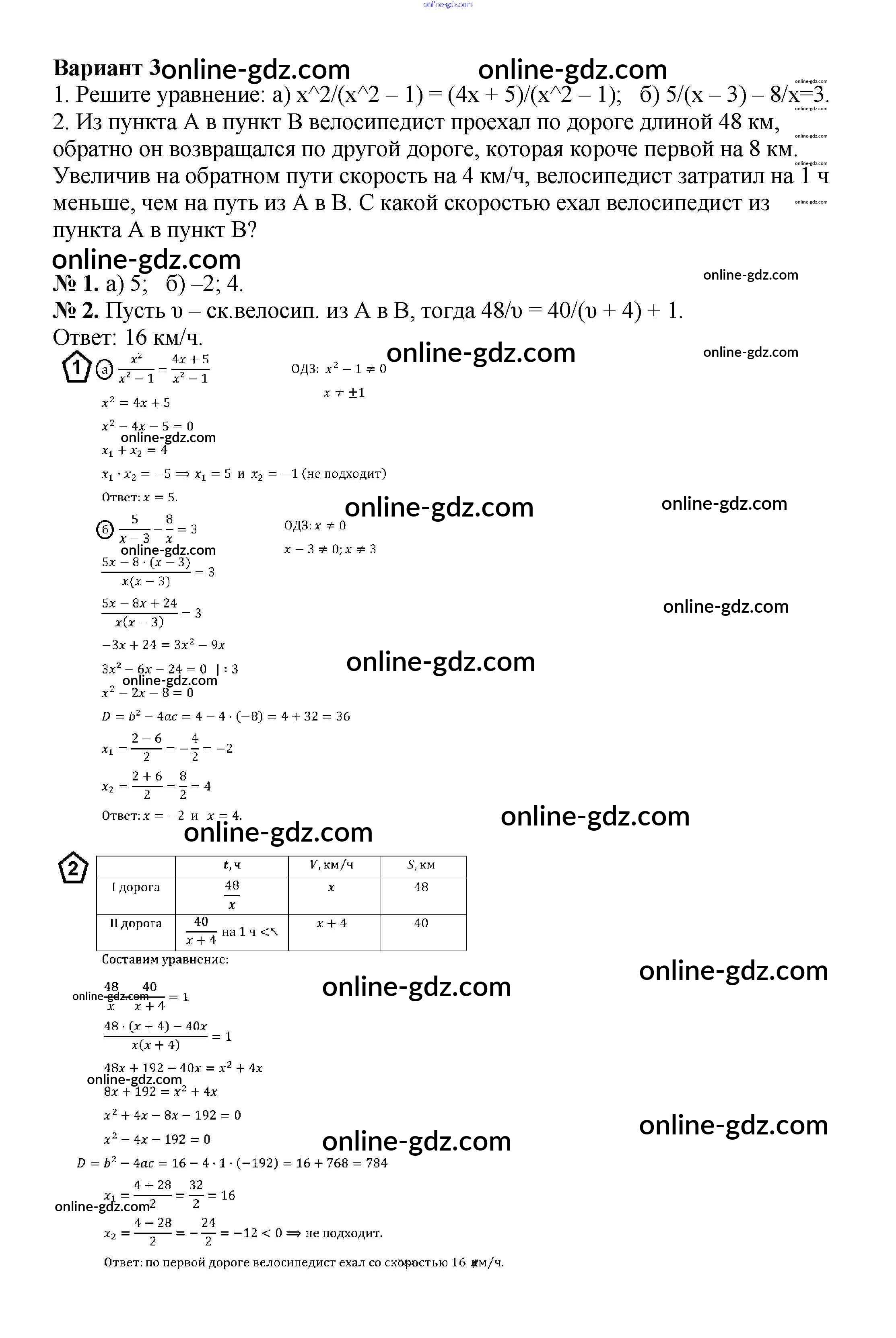 Готовые домашние задания по Алгебре за 8 класс Дидактические материалы Жохов, Макарычев 2014 - КР №6 Контрольные работы вариант 3